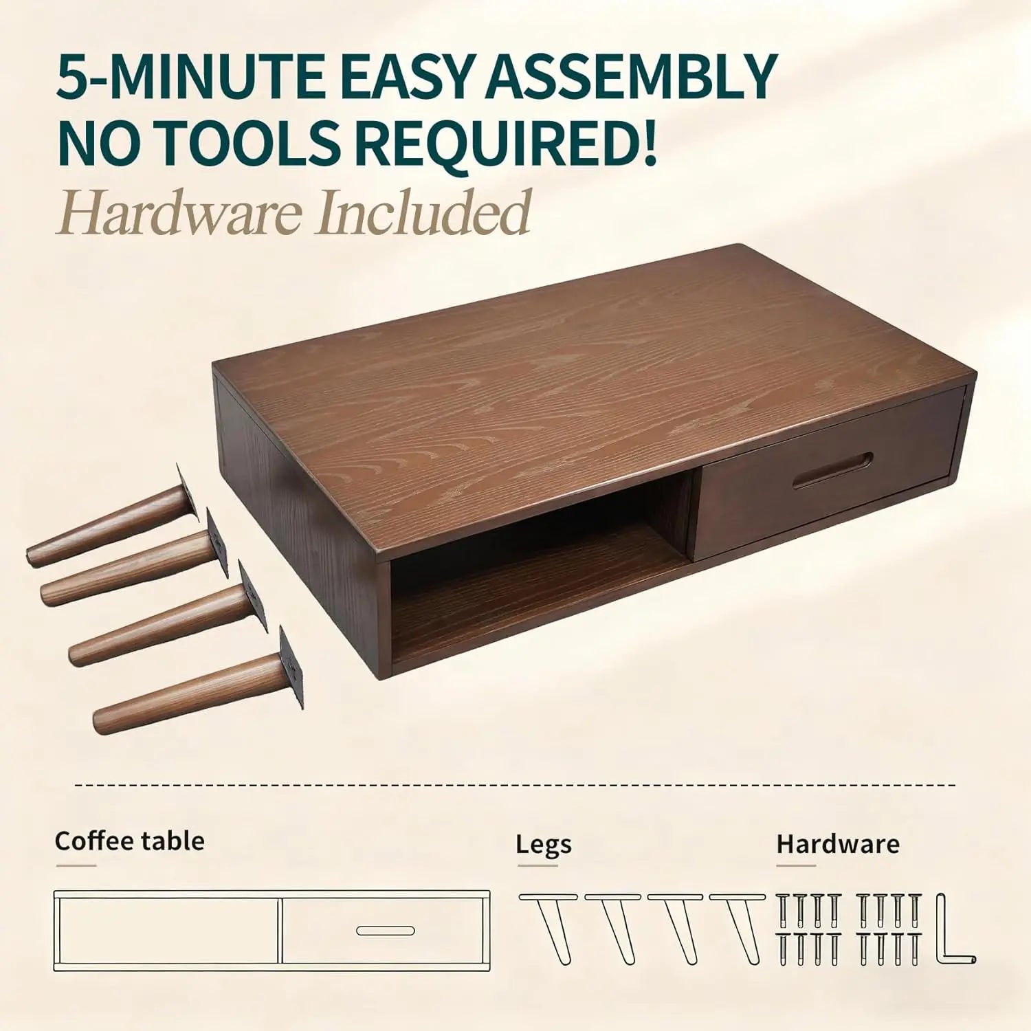 Quick Assembly: The coffee table is shipped fully assembled—simply tighten the four legs at the bottom, and no additional steps are required. Each table is securely packaged to arrive in perfect condition. We stand behind our product, and our 24/7 support team is ready to assist with any questions or concerns.