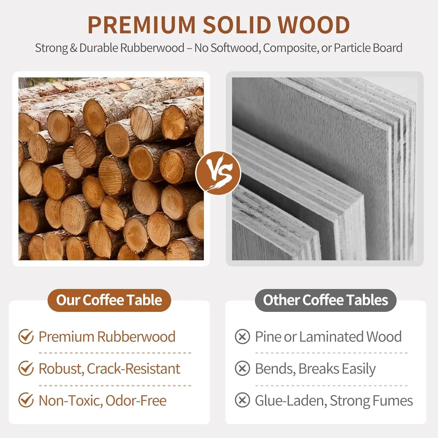 Premium Material: This coffee table is crafted from 100% high-quality oak. Our product combines strength, durability, and a smooth, natural finish. The solid wood construction ensures long-lasting use and effortlessly supports up to 300 lbs. It brings a refined yet warm touch to your home.